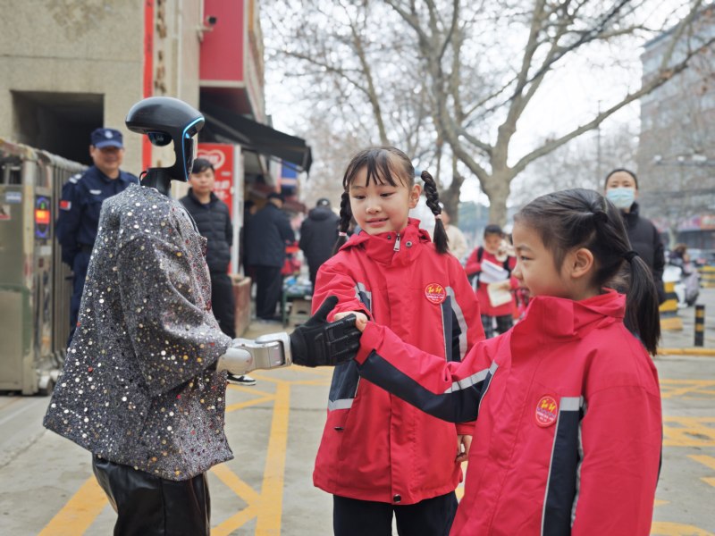 “机器人迎新太酷了!新学期我要做科创小达人!”西咸新区沣东五一小学校门口,机器人化身科技萌宠惊喜亮相,与返校的孩子们亲切互动、挥手问好。憨态可掬的机器人用灵动的回应传递温暖与惊喜,引得孩子们纷纷驻足围观,争相与萌宠合影留念。“它跟我打招呼了,好可爱!”一年级学生兴奋地拉着家长的手说道。老师们也在一旁记录下这温馨瞬间。不一样的报名仪式,藏着学校最用心的守护,让每一位孩子带着好奇与期待,开启充满活力的新学期之旅。