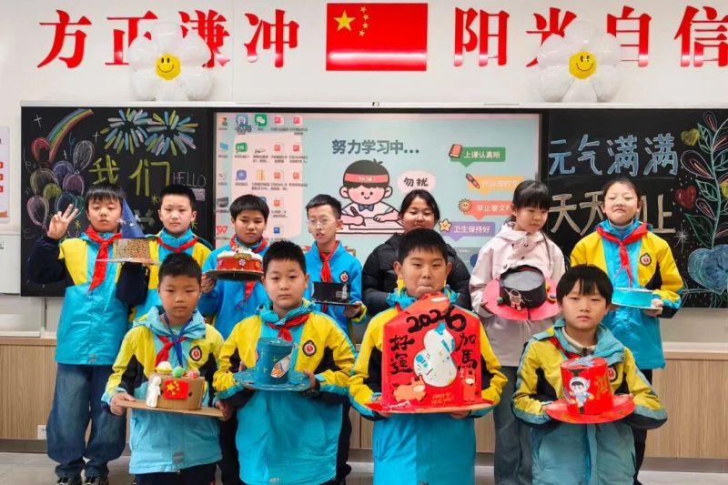 沣东新城第九小学则以“做闪闪发光的自己”为主题迎接学生返校。教室里,新课本整齐摆放,课桌上铺着鲜艳的红领巾。引人注意的是,不少孩子戴着自制的科技小帽走进校门,创意满满的小物件不仅彰显着孩子们的巧思,更在动手制作的过程中,将对科学探索的浓厚兴趣悄然传递,也让新学期多了一抹别样的科创色彩。