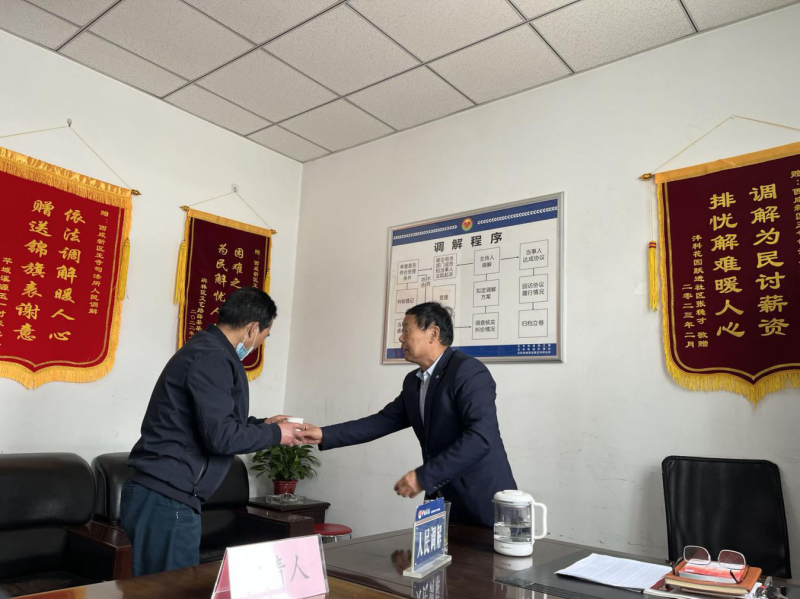 2023年2月16日,辖区居民史某某因2万余元的工资一直被公司拖欠,遂向高余良求助。他立即受理,并通过电话和实地走访了解核实了当事人双方的具体情况,并结合实际情况制定了调解方案。在经过与用人单位的多次沟通和协调后,最终4月底,史某某成功拿到了工资。事后当事人史女士兴高采烈地向老高送来了锦旗,表达自己心中的感激之情。