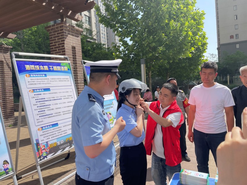“戴头盔、别酒驾,一定要注意正确佩戴头盔,不能系太紧也不能系太松……”,5月14日上午,康定和园小区广场内人头攒动,康定和园社区联合西咸交警大队执勤二中队开展交通安全宣传活动。