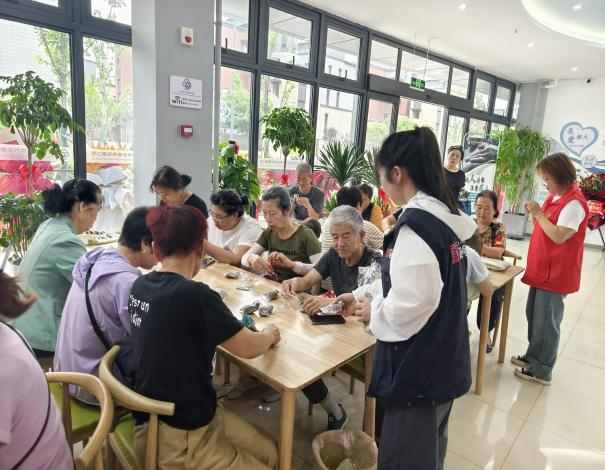 工作人员事先准备好了艾草、布料、针线等材料,居民们纷纷围坐在桌前,开始动手制作艾草挂件。有的居民选择将艾草编织成小巧玲珑的粽子形状,有的则将其缝制成精美的香囊,还有的将艾草与五彩丝线巧妙结合,制作出了别具一格的挂饰。在大家的巧手下,一个个艾草挂件逐渐成形,散发着淡淡的清香。除了制作艾草挂件,居民们还学习了如何使用艾草制作香包。在工作人员的指导下,大家将艾草填充进布袋中,经过缝制和装饰,-个个具有端午节特色的艾草香包便诞生了。这些香包不仅美观实用,还寓意着驱邪避疫、祈求平安的美好愿望。