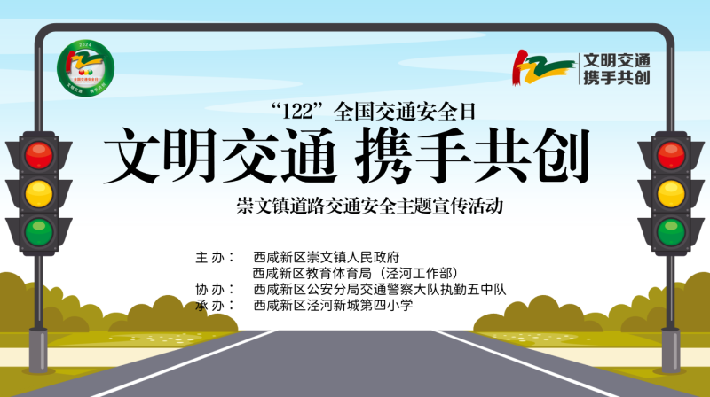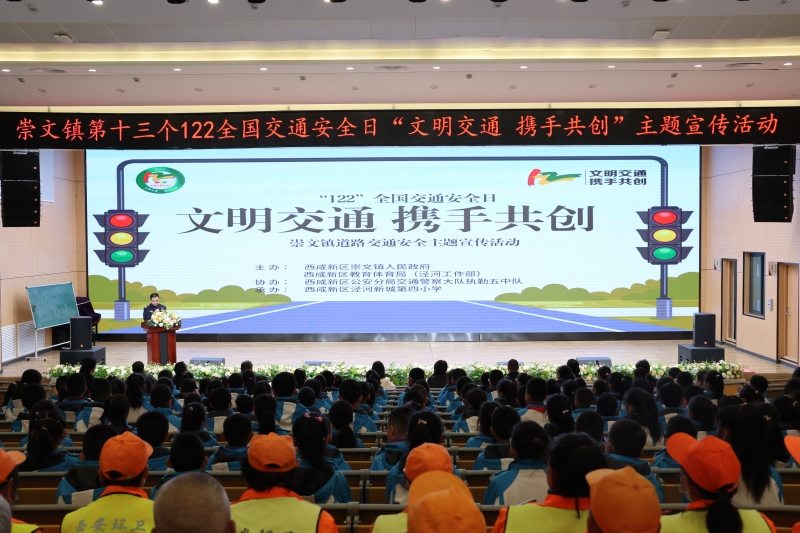 2024年12月2日是第十三个“122全国交通安全日”,主题是“文明交通携手共创”。为深入贯彻落实省市及新区关于开展“全国交通安全日”活动要求,增强崇文镇人民群众交通安全意识,普及交通法规知识,崇文镇人民政府联合西咸新区教育体育局(泾河工作部)、西咸新区公安分局交通警察大队执勤五中队共同在泾河新城第四小学开展主题宣传活动,旨在倡导师生文明出行,预防减少交通事故,营造安全、畅通、文明的道路交通环境。