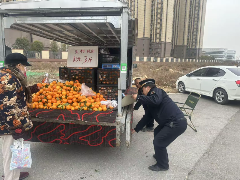 “师傅!卖东西不能占道经营,影响交通安全,到咱指定的地方摆摊,那里安全,人流量还大,我帮你收拾!”崇文执法队员柔性执法,引导占道经营的摊贩到指定地点进行售卖。