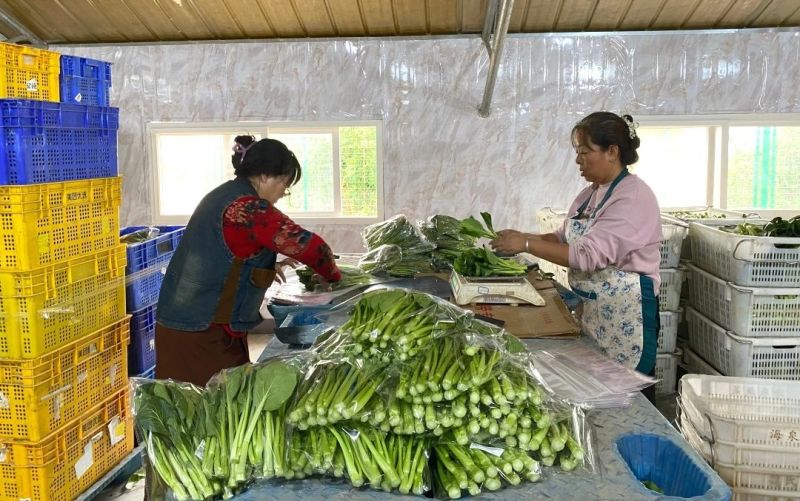 来到包装车间,几名工人正在分拣包装青菜。“他们都是附近村民,大家现在正给‘快驴’分拣包装。”苏佳介绍,基地产品销路广,既有盒马等大型商超,也有快驴、美团、多多等电商渠道,还销往欣桥等批发市场。“我们不但自己的产品不愁卖,还收购村民的产品代卖。”