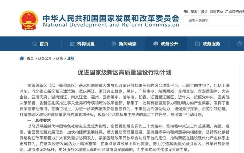 3月15日,国家发展改革委发布《促进国家级新区高质量建设行动计划》,全文如下。