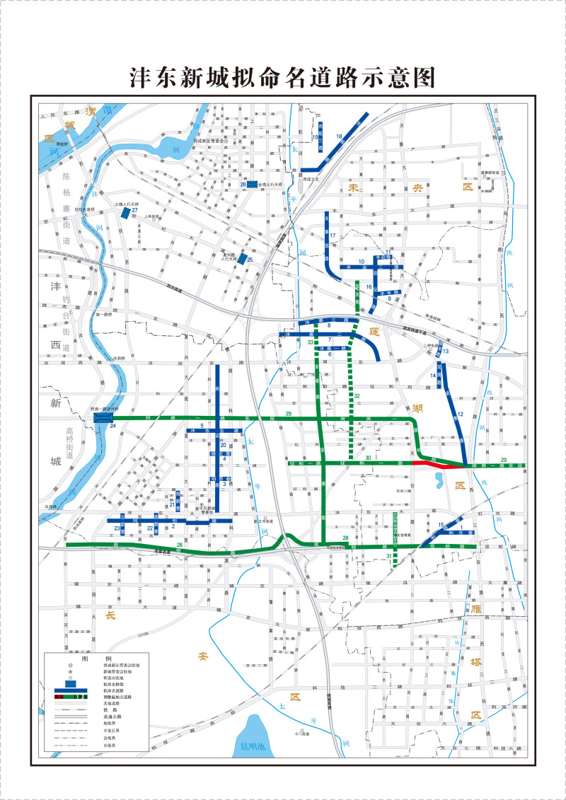 根据《地名管理条例》《陕西省实施<地名管理条例>办法》《西安市城市道路命名导则》和《西咸新区地名管理实施细则(2022 年修订)》等有关规定,拟对西咸新区2024年第一批93条市政交通设施进行命名,现将拟命名方案进行公示。