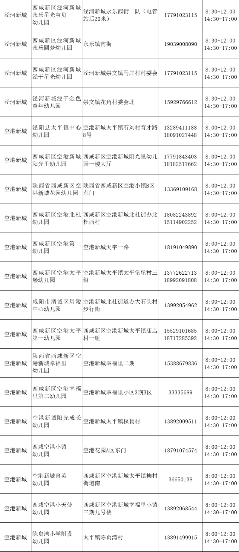 为方便广大家长为适龄幼儿选择资质健全的幼儿园,现将西咸新区各幼儿园招生咨询信息以及新区教育部门电话予以公布,欢迎大家咨询了解。