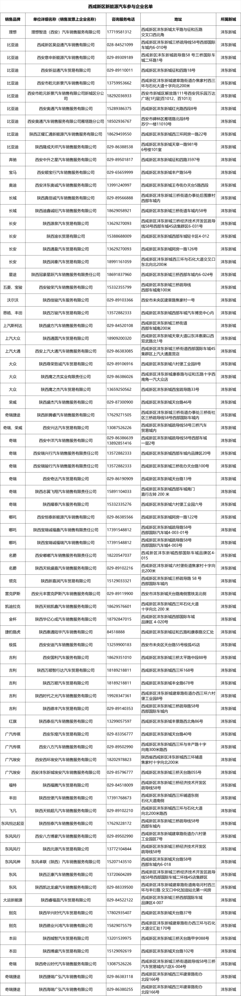 近日,西安市印发《消费品以旧换新和促进消费实施方案》,对个人消费者购买新能源乘用车、智能家居、绿色家电等进行补贴,小编为大家整理了西咸新区参与消费补贴企业名单,一起来看看。