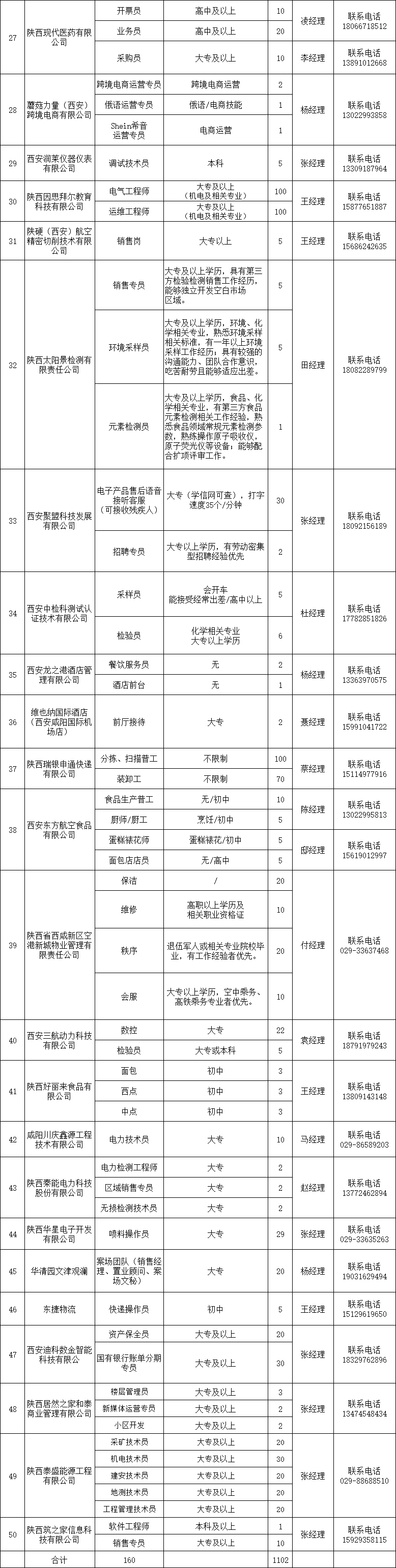 西咸新区企业招聘信息一览表