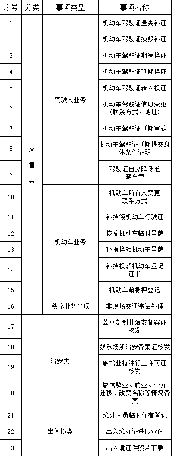 3项出入境业务、4项治安业务