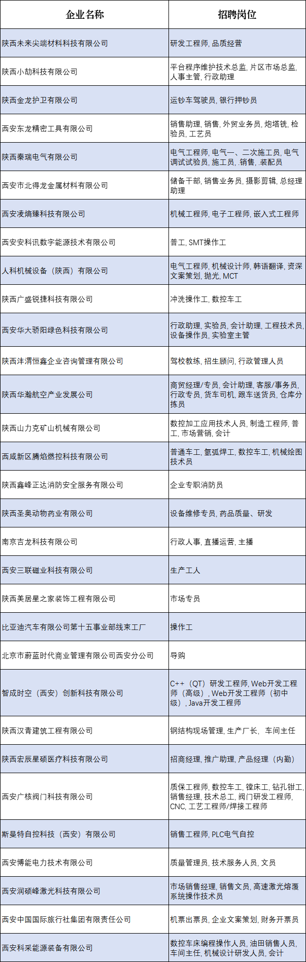 招聘企业及岗位名单