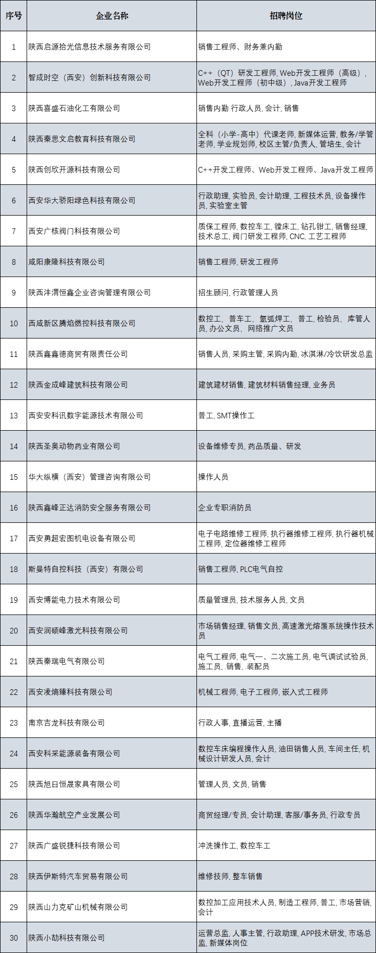 招聘企业及岗位名单