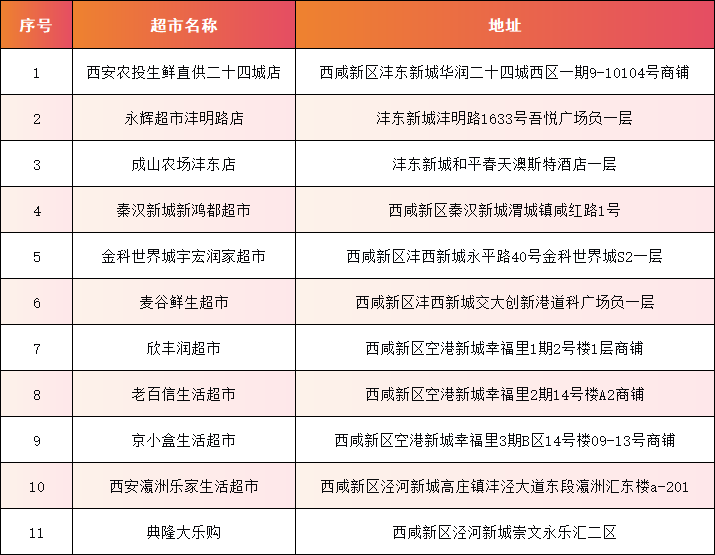 此次储备蔬菜投放地点包括西咸新区这些地方: