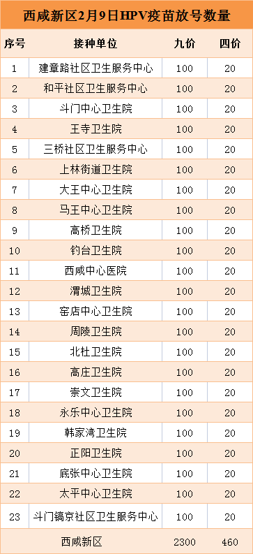 西咸新区2025年2月9日HPV疫苗放号数量