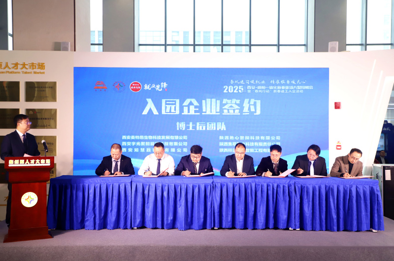 5家单位被授予省级、市级博士后创新基地,11支博士及博士后创新创业团队与陕西省博士后创新创业园签订了入园协议,4家企业与中国(西安)人力资源产业园签订入驻协议,9家产业园区、职业院校、重点企业携手签约产教联合体。
