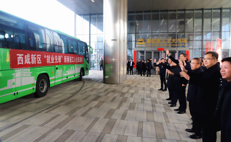 2月7日,蛇年春节后的西咸新区秦创原人才大市场热闹非凡,西安-咸阳一体化2025年新春首场大型招聘会暨“春风行动”新春送工入企系列活动在这里举办,100多家企业现场提供就业岗位,1500多名求职者到场应聘,85名新入职员工代表坐上送工入企直通车开启新的职业旅途。