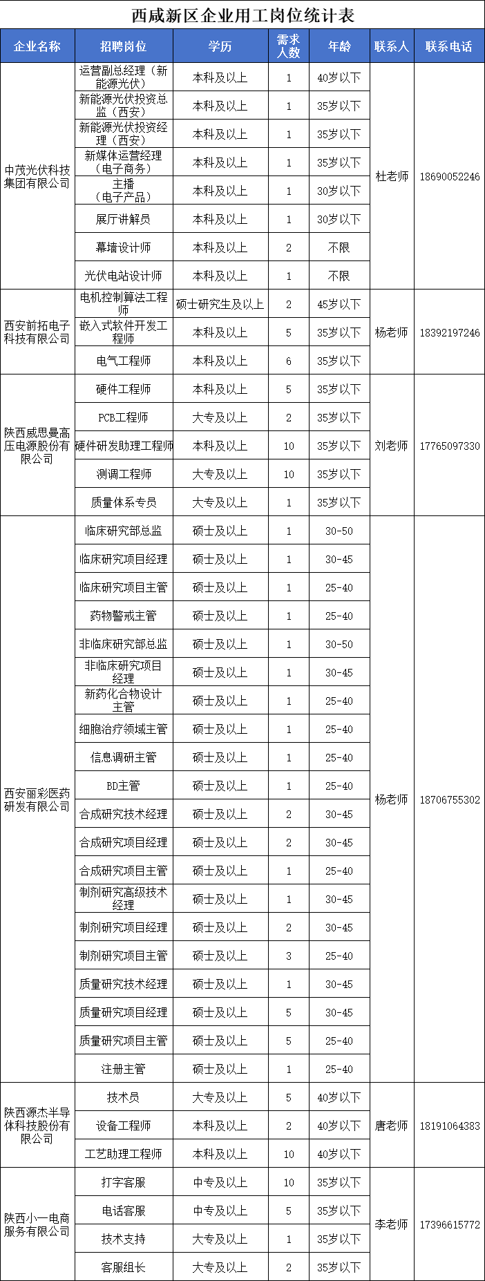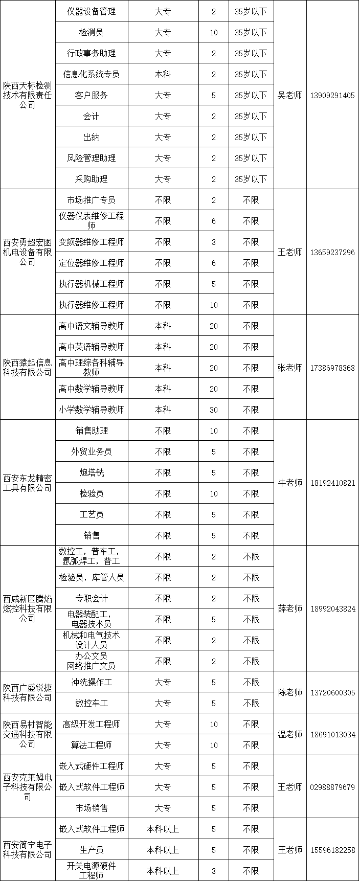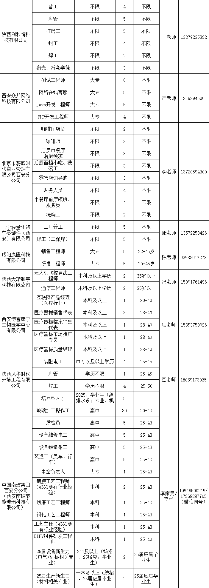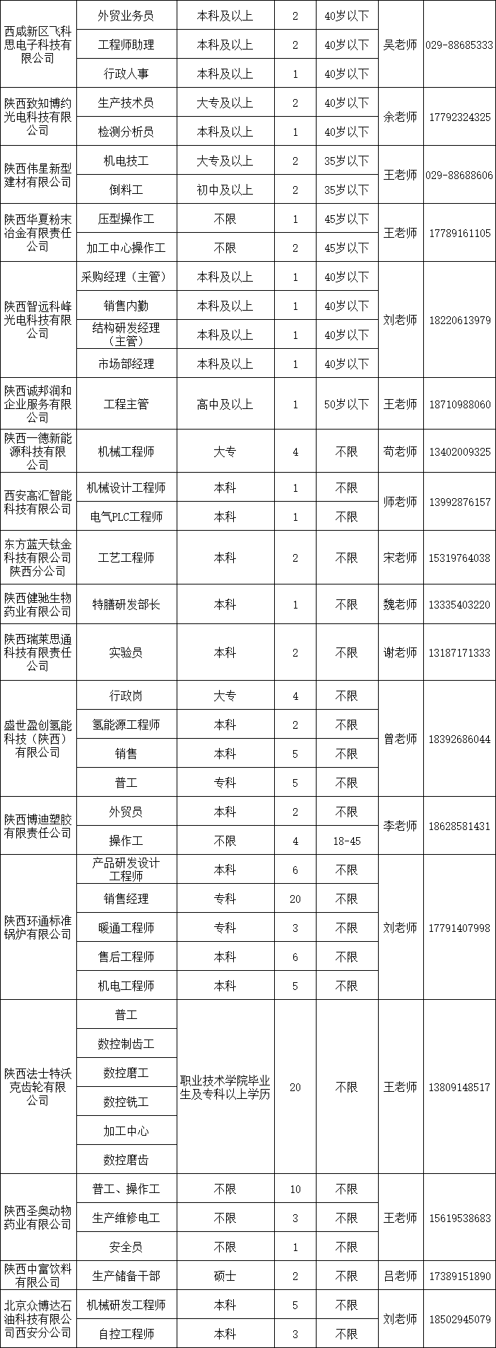2024年西安-咸阳一体化第一批企业用工岗位