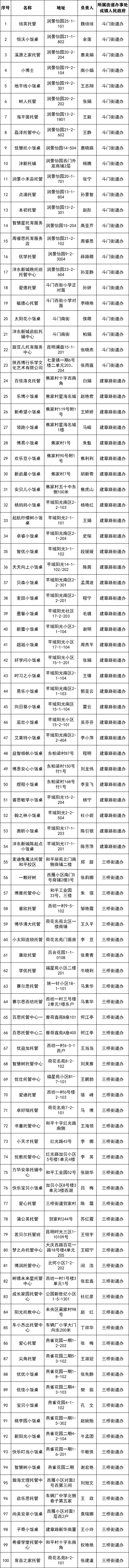 2025年西咸新区校外托餐机构(小饭桌)登记备案名单(春季)