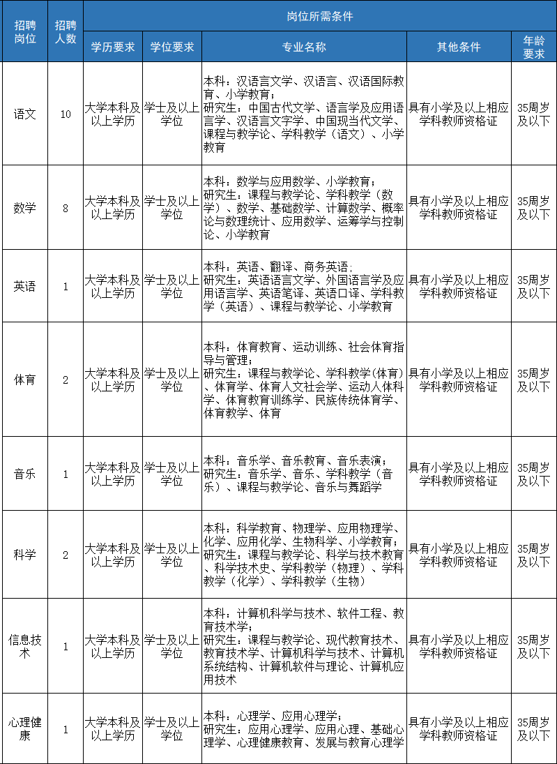 报考教师岗位的,满足以下条件之一者,学历可放宽至大专,专业不限,教师资格证学科不作要求,年龄放宽至45周岁(1979年4月2日以后出生):