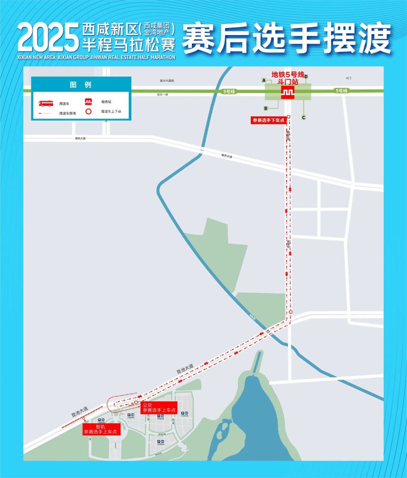 本次赛事,组委会已为所有选手提前协调西安地铁5号线在比赛日(4月20日)将首班车提前30分钟发车(5:30双向首发)。