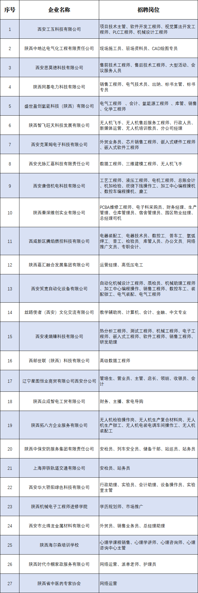 招聘企业及岗位名单