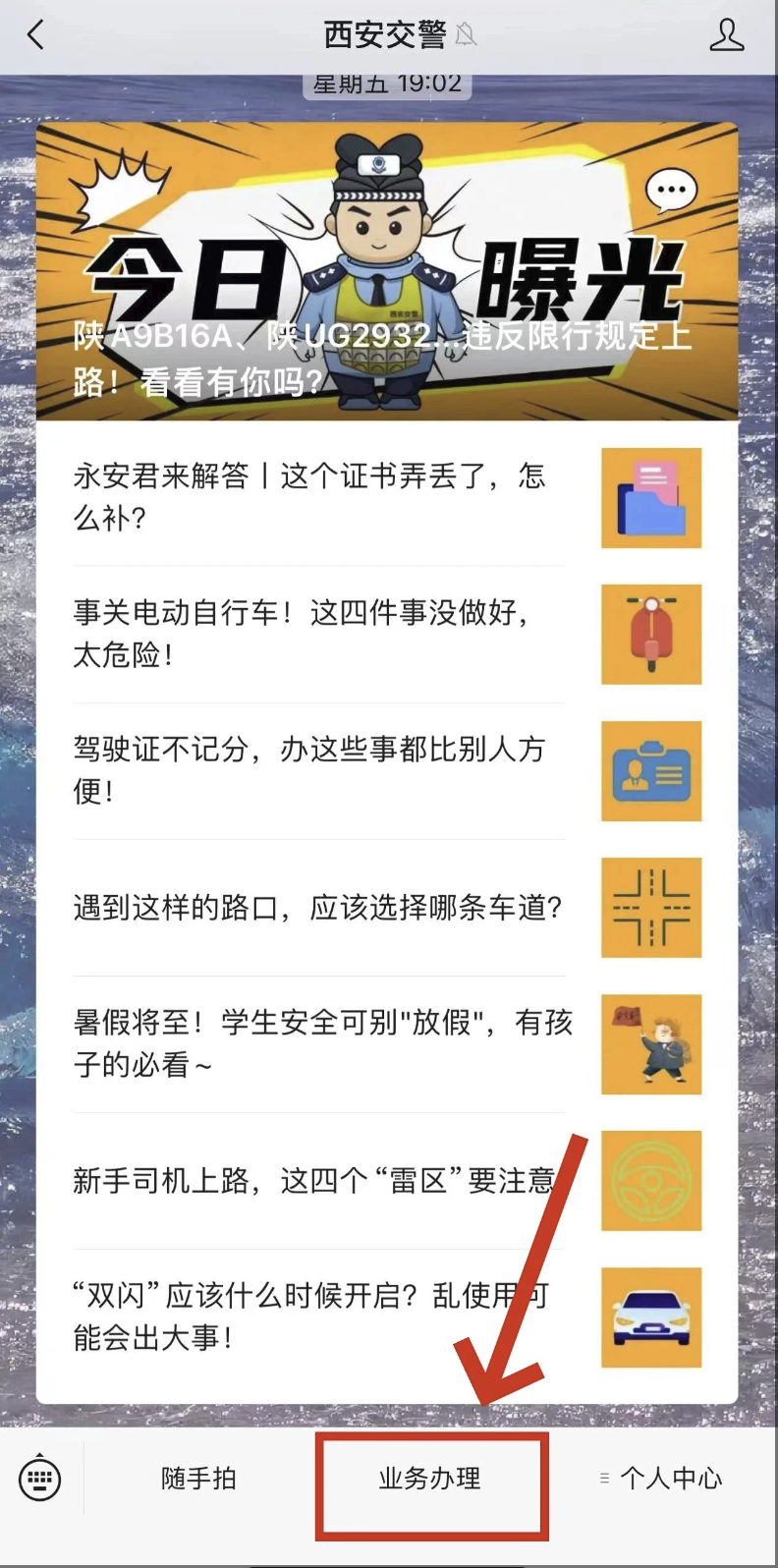第一步:关注“西安交警”微信公众号,点击“业务办理”,随后点击“电动自行车业务预约”,按照流程填写相关信息,选择合适的挂牌地点进行预约。