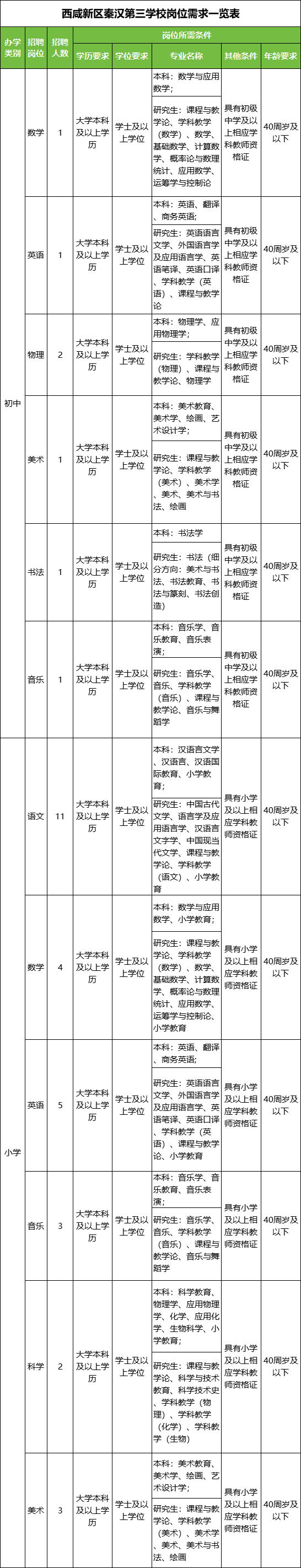 西咸新区沣东第五初级中学拟招聘教职工32人。