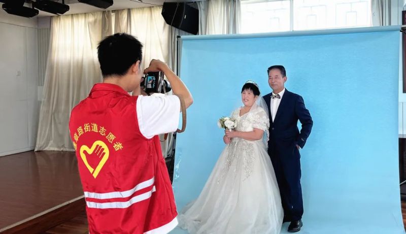 建章路街道志愿服务队从2021年10月起就开始在重阳节等传统节日免费为老年人理发、拍摄结婚纪念照,目前共计服务过48对老年夫妻,年龄最大的82岁,年龄最小的62岁。弥补了他们过去未能拍上婚纱照的遗憾,弘扬敬老尊老的传统美德。