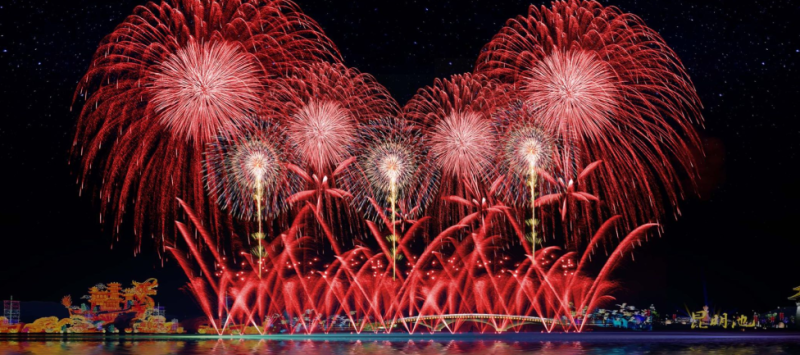 烟花映昆池,弄潮秦创原,2月5日,西咸新区元宵节焰火晚会与您相约昆明池畔,美丽的烟花,精彩的节目陪您共渡元宵佳节。