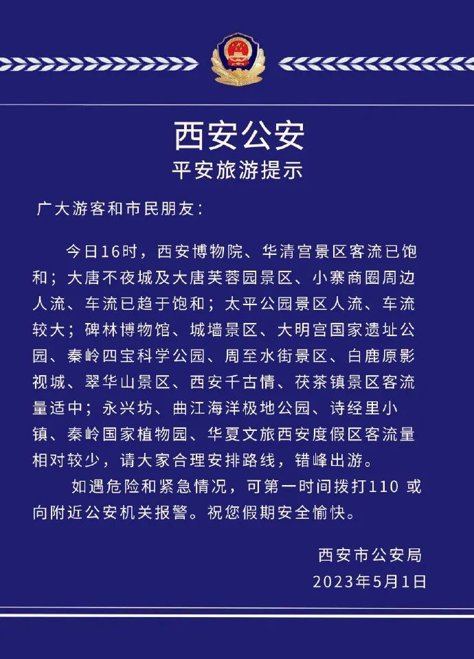 西安公安平安旅游最新提示