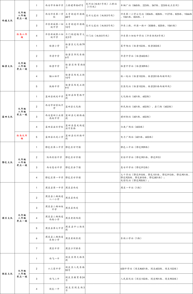 2023年西安市初中学业水平考试考点公共交通出行指引