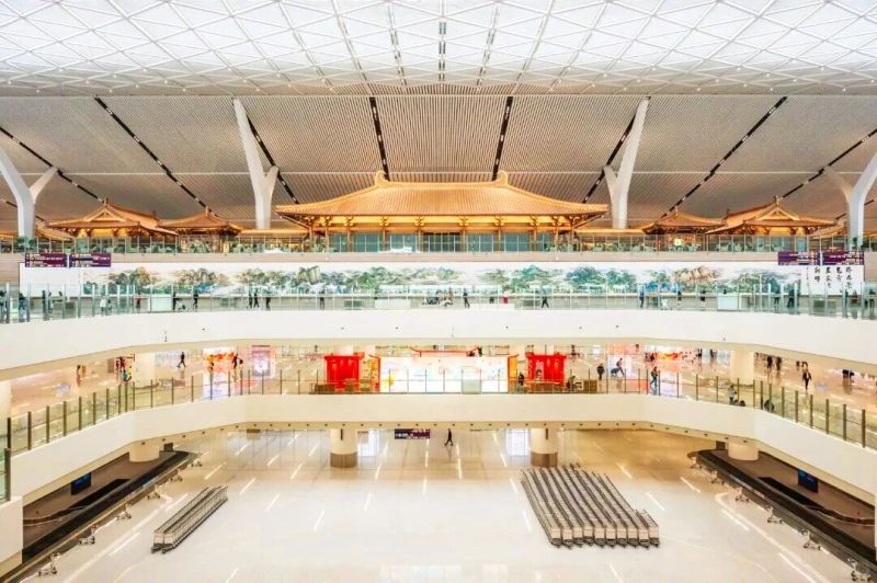 商业配套方面,航站楼区域已引入白鹿原、同盛祥等60余个餐饮品牌,以及Ecco、周大福、大疆等70余个零售品牌,成熟的机场生活商圈已然形成;航站楼外的商务区核心区,肯德基、肯悦咖啡等品牌已相继开业,今年下半年必胜客餐厅与金融机构也将正式入驻,办公生活配套持续补位完善。