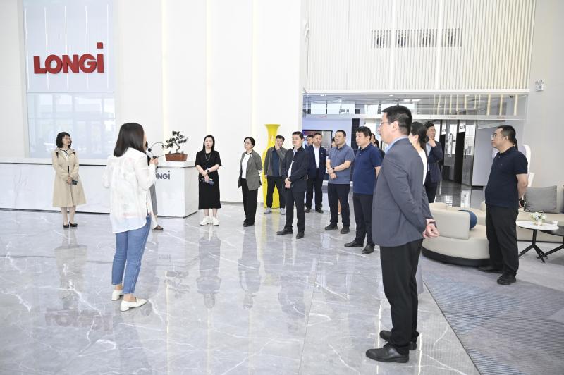 走进位于泾河新城的隆基乐叶光伏科技(西咸新区)有限公司,专家和校长们在展厅仔细观赏陈列的光伏电池展品,通过宣传片详细了解目前园区建设情况及隆基绿能光伏产业未来发展前景。隆基绿能是全球规模最大的太阳能科技公司,也是中国的新能源龙头企业。