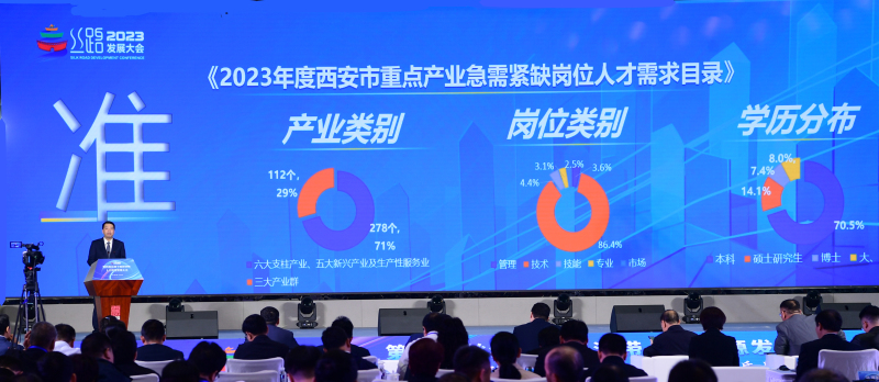 会议中,西安市人社局党组书记、局长廉宏伟发布《2023年度西安市重点产业急需紧缺岗位人才需求目录》,中国人事科学研究院副院长柳学智发布《人力资源系列蓝皮书》。