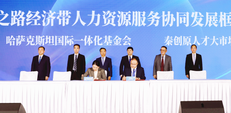 会上,哈萨克斯坦共和国际一体化基金会和秦创原人才大市场签订《丝绸之路经济带人力资源服务协同发展框架协议》,双方将通过人才培训、人才交流、政策研究、信息共享等方式,携手为丝路经济带建设提供有力的人才和智力支持。随后《丝绸之路经济带高层次人才“领航”计划战略合作框架协议》签订。
