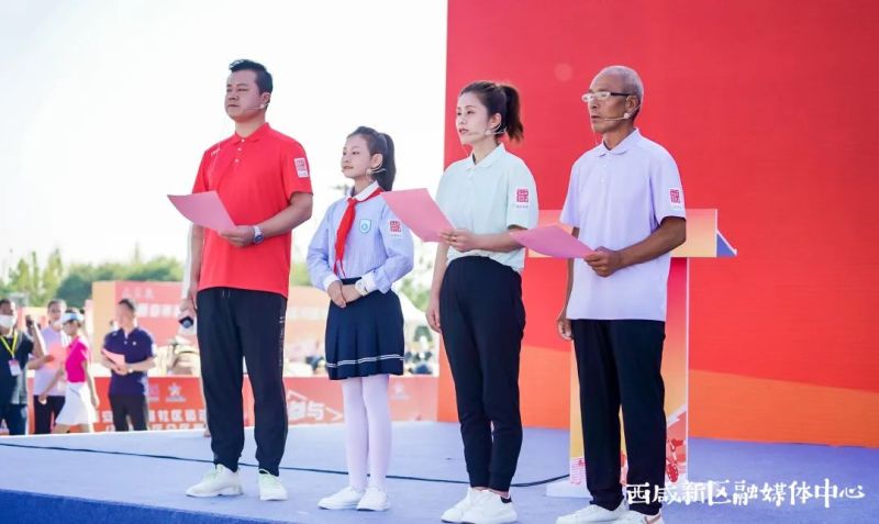 开幕式在激昂的国歌声中拉开序幕。随后,社区体育家庭代表发出《一起运动吧》倡议,运动员、裁判员代表分别围绕参赛和执裁进行宣誓。随着参会领导嘉宾共同按下启动柱,西安市首届社区运动会西咸新区分区赛正式拉开帷幕。