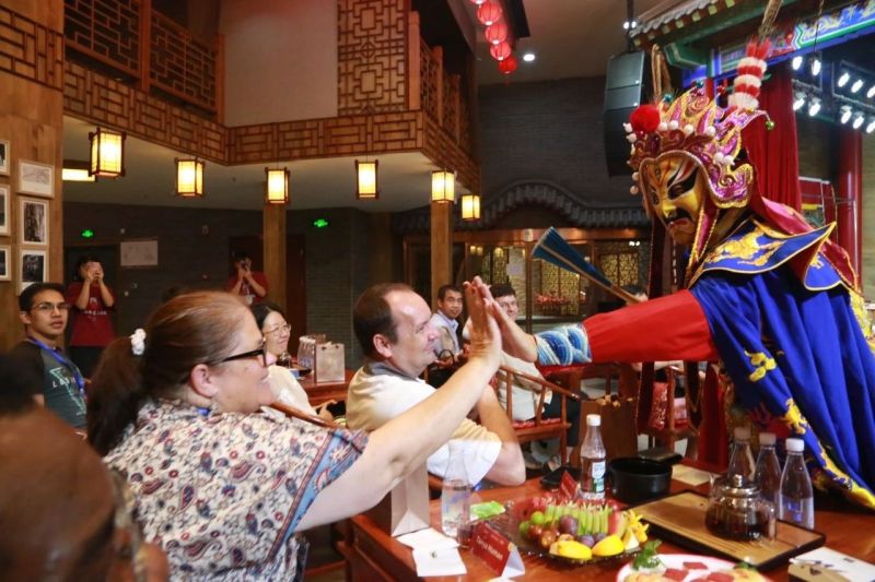 活动中,外国专家们一同观看了长嘴壶、安塞腰鼓、皮影戏等非遗演出。看着师傅们行云流水般的动作,众人直呼“Fantastic!”。
