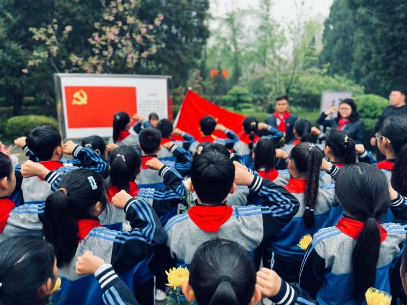 缅怀先烈,继承遗志。珍惜当下,努力奋斗。孩子们敬献花束,细心擦拭烈士墓碑,表示要把英烈的精神融入到学习、生活中,争做新时代好队员。