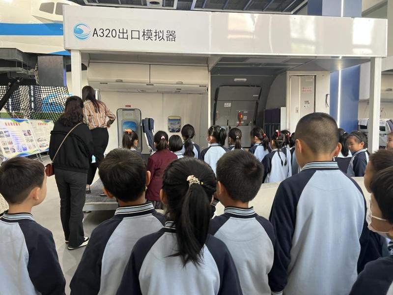 云端翱翔 航天探索——开展航空知识研学活动。通过参观真实的飞机仓,学习飞行安全知识,进行飞行模拟器体验,学生们不仅增强了科学素养,也激发了对航空领域未来职业的兴趣。