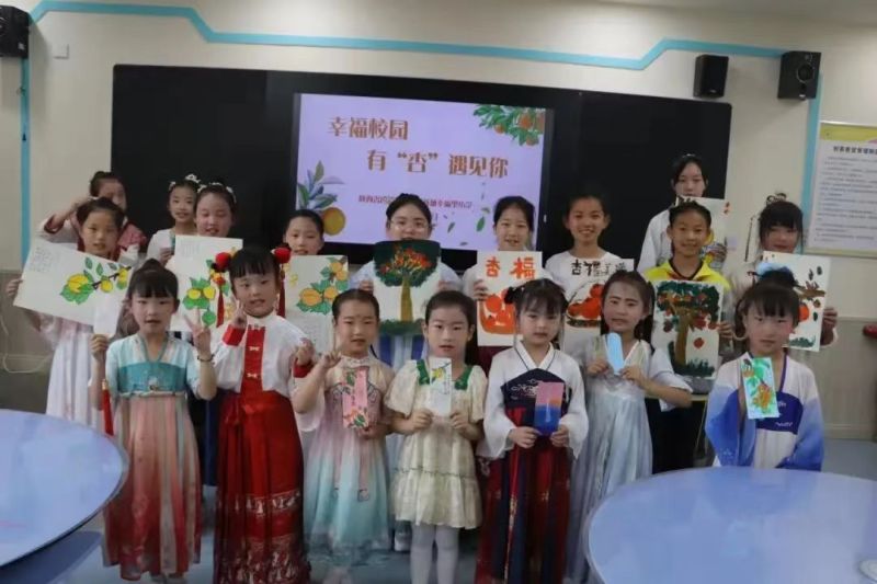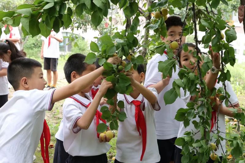 酸甜水果茶出炉:跨上竹篮,穿梭于学校百果园,孩子们“摘枇杷”“摘杏子”,领悟劳动的意义,品悟收获的喜悦;化身“茶点师”,制作枇杷膏,杏皮茶,温润师生心田。