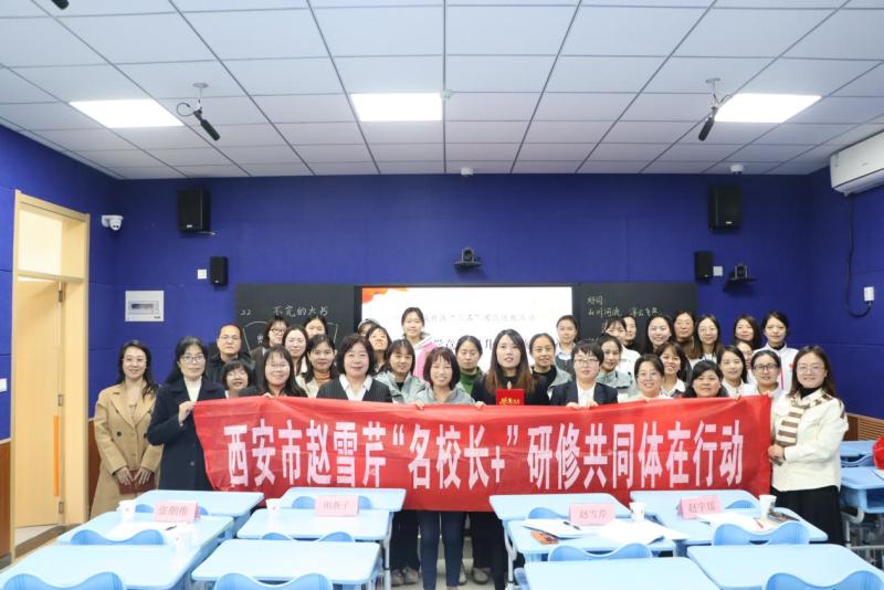 西安市赵雪芹“名校长+”领航研修共同体为西安市首批成立领航研修共同体,核心成员共4人。通过合作搭台,为区域教育优质发展助力。通过“讲”“研”“学”“创”“帮”扎实开展各项活动,先后与11所小学实施订单式、针对性强的线下培训20余次,微报告20余次,听评课240余节。以异构课、送教课、思政课、诊断课等为载体,与兄弟学校教师共研、共议、共评好课堂具备要素,参与研讨活动的教职工2000余人次,有效促提乡村小学教师职业素养。