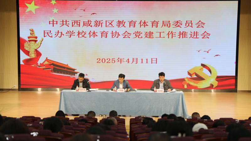 2025年4月11日,西咸新区教育体育局党委组织召开民办学校体育协会党建工作推进会。会议传达学习《关于学校党的建设工作的意见》,全国和全省、全市新兴领域党建工作座谈会精神;通报新区教育体育系统党建工作现状及存在问题,回顾总结新区教育体育系统民办学校和体育协会党建工作;沣东阳光城小学等4个党支部和党建指导员代表刘丰梅交流发言。