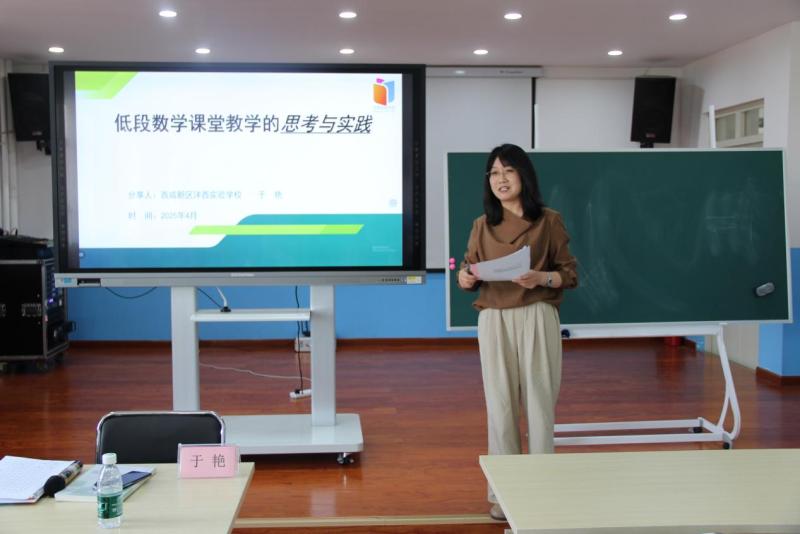 西咸新区兼职教研员于艳作《低段数学课堂教学的思考与实践》专题讲座,结合低年级学生认知特点,强调“做中学”“用中学”“创中学”,并对展示课进行专业点评,建议通过真实参与提升学生综合能力。