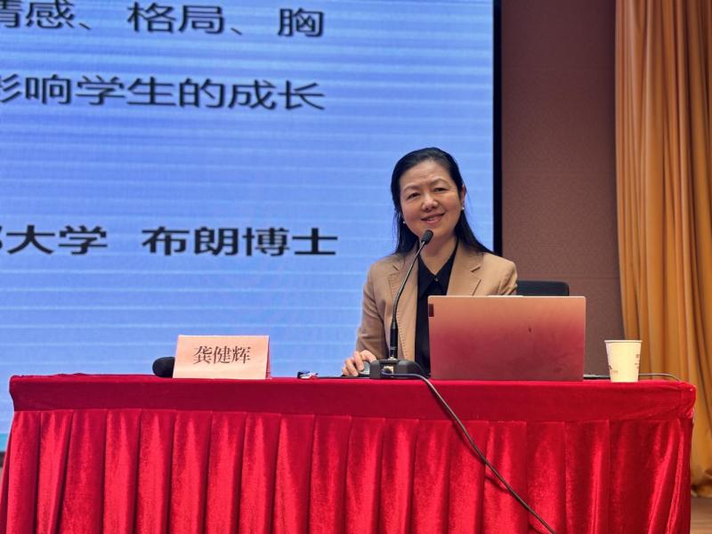 讲座环节,陕西省基础教育学科带头人、西咸新区沣西第一小学教育集团总校长龚健辉以《数智时代基于中国学生发展核心素养背景下教师发展》为题进行专题讲座。龚健辉深耕教育一线多年,在数智教育融合、核心素养培养等领域有着深厚的理论积淀和丰富的实践经验。讲座中,她围绕数智时代教育变革的核心特征、《中国学生发展核心素养》及其解读、教师的时代之“变”等方面,系统阐述了核心素养导向下教师能力提升的路径方法、智慧校园建设的实践案例,从技术赋能课堂教学创新、数据驱动精准育人、教师数字素养提升等多个维度,为在场教师提供了系统全面、可操作性强的专业指导。