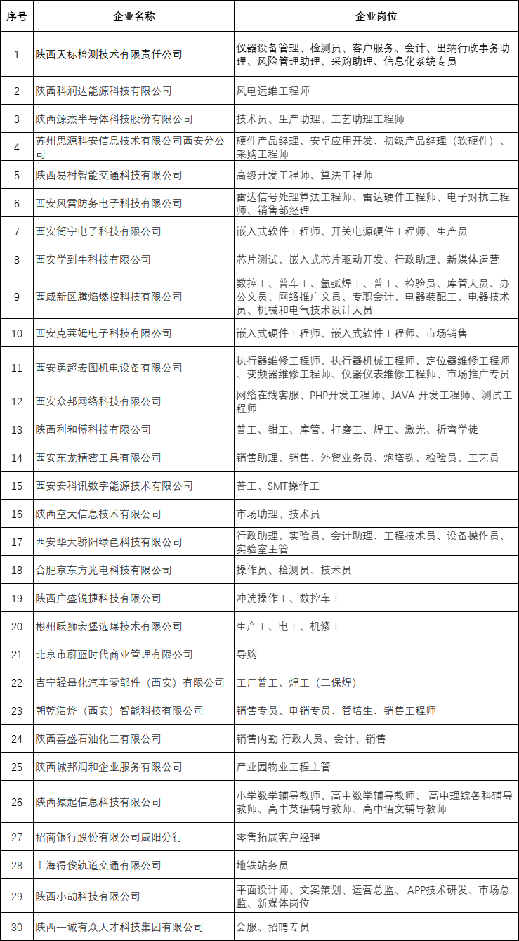 招聘企业及岗位名单