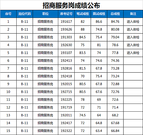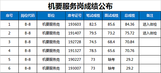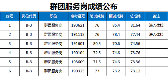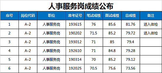 西咸新区管委会公开招聘派遣制员工面试成绩及进入体检人员名单公告