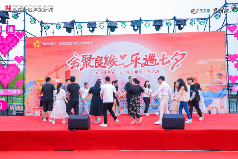 8月22日下午,“会聚良缘·乐遇七夕”2023年西安市青年职工联谊交友活动在西咸新区昆明池举办,近千名单身青年在鹊桥见证下开启追寻真爱之旅,昆明池·七夕公园也荣获“西安市青年职工联谊交友基地”称号。
