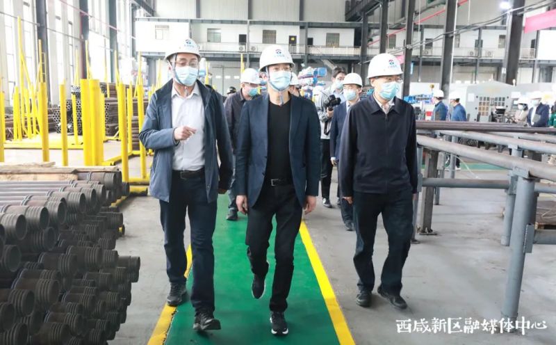 随后,杨仁华来到陕西太合智能钻探有限公司,了解企业业务布局和生产经营状况,调研钻具车间及全自动环形钻杆生产线、钻杆工艺情况,要求进一步加大对“专精特新”企业的扶持力度,把实体经济特别是先进制造业做强做优。