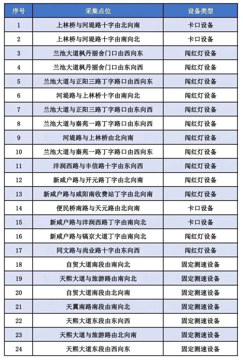 凡在上述点位,有驾驶机动车违反道路交通信号通行、违反禁令标志及禁止标线指示、逆向行驶、驾车不系安全带、驾车拨打手持电话、不按规定车道行驶、超速行驶等交通违法行为的,将按照《中华人民共和国道路交通安全法》等相关规定予以处罚。请广大交通参与者严格遵守交通法律法规,安全驾驶,文明出行,共同营造安全、畅通、有序的道路交通环境。