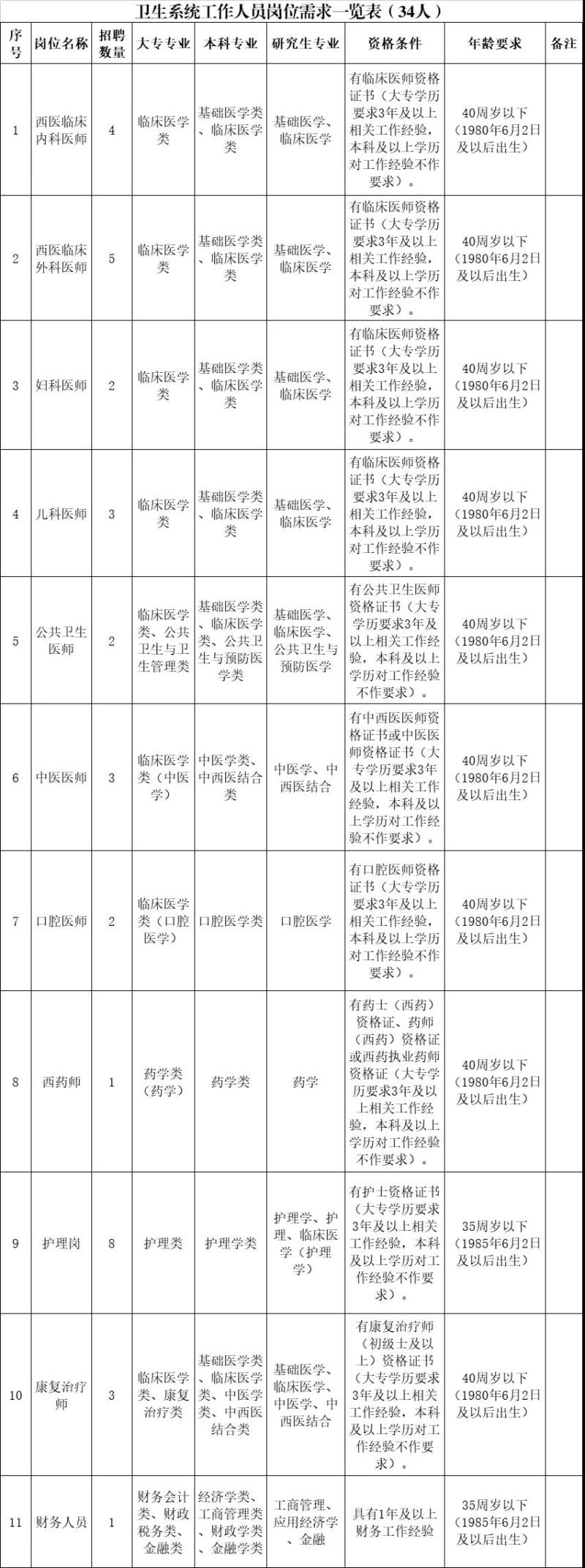 ②护理岗年龄需在35周岁以下(1985年6月2日及以后出生),其他岗位年龄需在40周岁以下(1980年6月2日及以后出生);